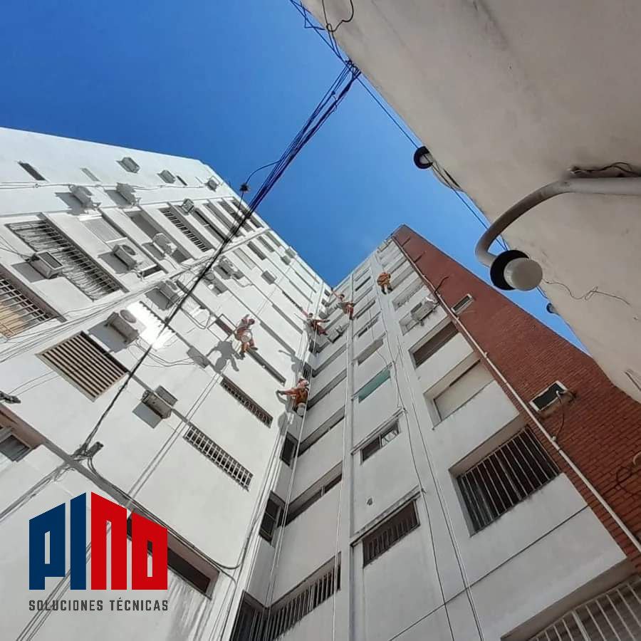Nuestra empresa se especializa en trabajos de difícil acceso, ofreciendo soluciones integrales para proyectos de limpieza, pintura, proyección de revoque, proyección de yeso y más, en áreas de altura o de acceso complejo.